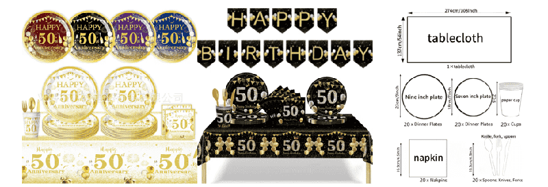 50th Birthday Disposable Tableware Set contains 7inch dessert plate, 9inch main dish plate, absorbent napkin, food grade plastic knife, fork and spoon. The 7-inch paper plate is suitable for cakes and snacks, and the 9-inch paper plate can hold dinner dishes. Napkins are soft and skin-friendly, strong in water absorption, plastic knives, forks and spoons are tough, safe and non-toxic, and can be discarded directly after use, thus saving cleaning troubles and time and labor. Our 50th birthday balloon tableware decoration set is suitable for birthday parties, anniversaries, retirements and other special occasions. Give full play to your creativity and use these decorations in different scenes to make any activity more wonderful and unforgettable.