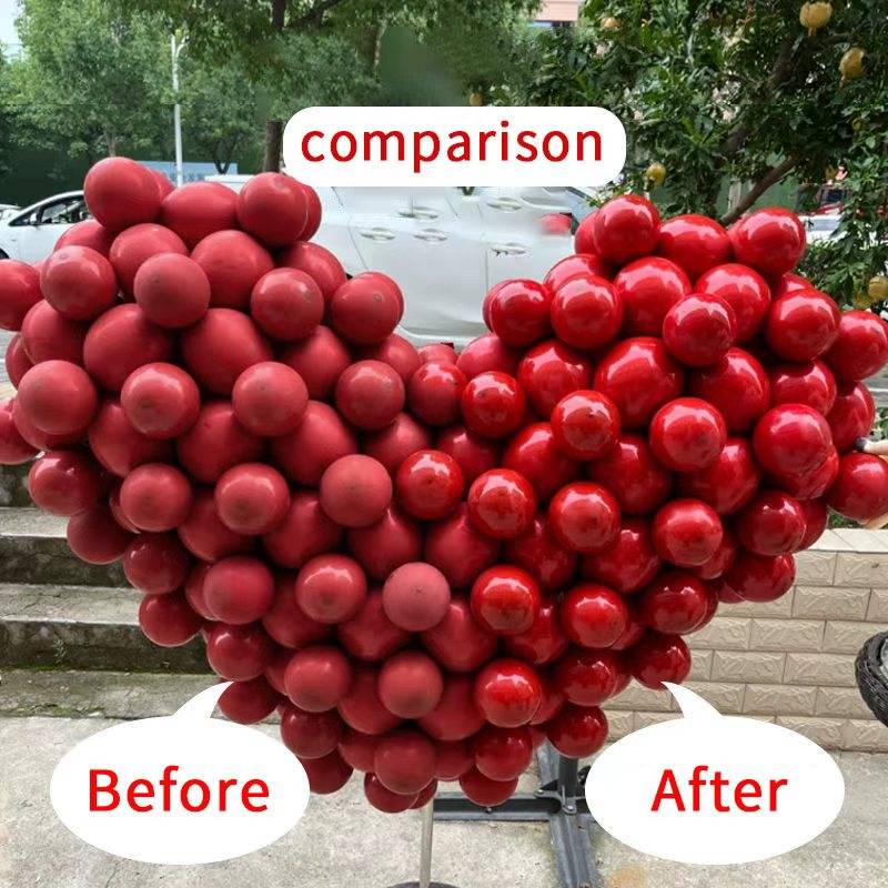 Balloon Shine Spray utilizes an innovative oil-based formula. Its micromolecular structure quickly penetrates and adheres to the latex surface, forming a seamless, high-gloss protective film. Treated balloons can achieve a gloss boost of over 300%, resulting in vibrant, rich colors.