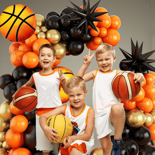 Basketball balloon garland kit is a symbolize of sports spirit. It comes with several latex balloon and several foil balloon. As it is for the basketball theme, the colors of this set is mainly orange and black, and to make different layers the metallic gold latex balloons are also added. The total style of it is very attractive, it can instantly enhance the atmosphere of your party.