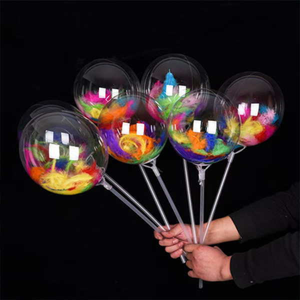For this feather-filled Bobo balloon kit, we also have a Bobo balloon tow pole and light box. The balloon tow rod consists of a 35cm rod, a balloon cup and a small plastic tube. The led light is powered by 2 AA batteries, batteries are not included in the scope of delivery. Light rope is usually divided into yellow led lights and color led lights, as well as red, yellow, purple and other colors, the length is 1 meter, 2 meters and other specifications. The LED has 3 blinking settings that allow you to set fast blinking, slow blinking, constant on and no blinking. You can change the light settings of the wave balloon to get wonderful multi-group effects. If you have any special needs, please feel free to consult, we will customize for you to meet your requirements of the filled feather Bobo balloon kit.