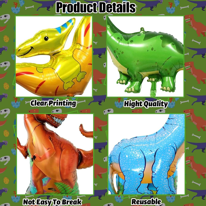 2. Small package for sale: Dinosaur theme foil balloon package. This package usually consists of a cartoon dinosaur shaped foil balloon, two star foil balloons and two circular jungle dinosaur themed foil balloons. The number is small and exquisite, the main core dinosaur image. It can be used as a decoration for children's birthday parties and dinosaur-themed activities. It can also be used as children's hand-held props to add children's interest. You can stick it on the wall, on the window, on the door, float in the air, or put it on the bed or floor.Cartoon dinosaur foil balloons can also be used as a small gift for children to surprise children.