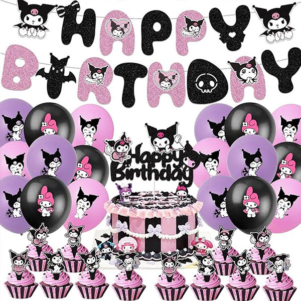 We also introduced the cartoon Kuromi printed balloon, which is made of natural latex material, environmentally friendly and pollution-free and there is no need to worry about exploding when inflated with helium or air. This latex balloon printed with a kuromi pattern can be used with a variety of party supplies, adjusting the number of balloons according to the size of the scene. We have carefully designed a variety of packages with Kuromi themed printed balloons for you. These packages include three-dimensional Kuromi foil balloons, happy birthday foil balloons, 18-inch heart-shaped foil balloons, 18-inch round foil balloons, and Kuromi-themed happy birthday banners. All decorations are made of high quality materials, bright colors, lovely patterns, thick texture, not easy to damage, to ensure that during the celebration of the event to maintain a perfect state.