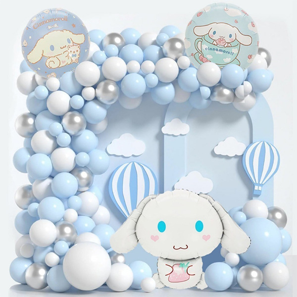 In this Cinnamorol themed latex balloon party kit, we paired it with themed tableware, including birthday banners, cake inserts, Cinnamorol themed latex balloons, cupcake top decorations, and more. With cute cartoon anime characters, our cute party decor is perfect for creating a charming and fun-filled atmosphere at any children's birthday party. The bright blue-and-white balloon wreath kit and background are sure to catch everyone's eye and bring joy to everyone. But it is the best decoration choice for your party. No need to worry about health problems when buying, you can rest assured to buy.