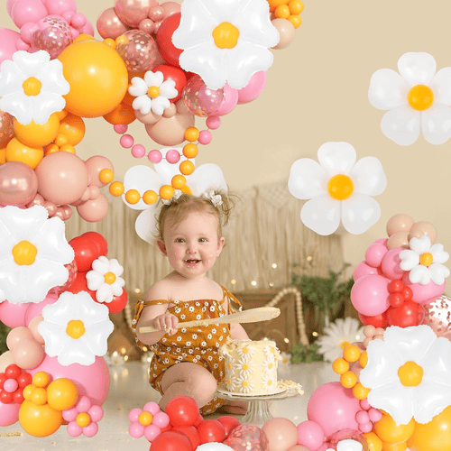 The balloons supplied with our high quality daisy balloon arch garland kit are environmentally safe balloons made of 100% biodegradable natural latex; therefore, when the balloons are finished being used no longer will there be an issue regarding waste disposal, since the latex will decompose like any other organic matter.The used balloons will gradually degrade in nature over time. To let your set owns various layers, we offer different sizes balloons, including 5inch, 10inch, 12inch and 18inch. These balloons are combined in many ways to create a perfect effect. When arranging the kit, you can also use the DIY ideas. Like put some birthday decorations to make daisy balloon birthday arch garland kit, or use some other accessories to make beautiful daisy balloon arch garland decoration. There are various combination you can make by you imagination. Thus, this kit is very worth to buy.