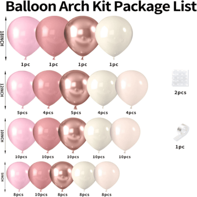 Dusty pink balloon small kit:This small kit is composed of 50 to 80pcs pink balloons. To enhance the layering effect of the set, you can also add white, apricot, and transparent balloons. Use helium to fill them and then you can use a ribbon to tie and then let them floated up in the air.