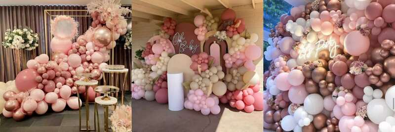 When planning birthday party, wedding, baby shower and gender reveal party, the dusty pink balloon arch kit always been mentioned.It consists of latex balloons in different shades of pink, including dusty pink latex balloon, matte light pink latex balloon, retro pink latex balloon,metallic rose gold latex balloon. In addition, matte white,retro ivory and the other colors also been added. The sizes for the latex balloons are 5inches, 10inches,12inches and 18inches.Different sizes make this arch kit has beautiful layers.The balloons we use are made from 100% natural latex which is totally eco-friendly and non-harmful for children.You can use your imagination to built up this kit, create your balloon arch by using flexible combinations and DIY styles. If you desire a higher energy feel, use light colored balloons on the outside perimeter of your decoration. Conversely, if you want an elegant look and feel, then use dark colored balloons on the perimeter of your decoration. Different combinations are all very interesting, and at the same time, they are all very easy to assemble. You can also use 50pcs-130pcs balloons to make the dusty pink balloon small kit or use different installation methods to create dusty pink balloon garland kit,filled them with helium and they will be able to make the floating up effect.