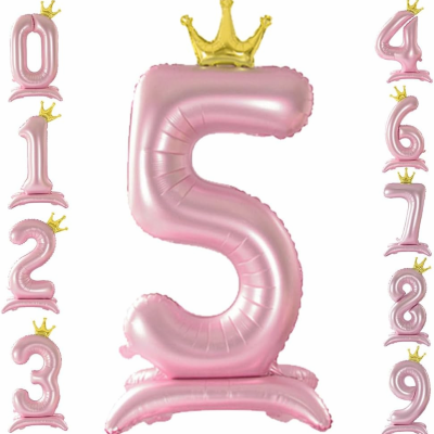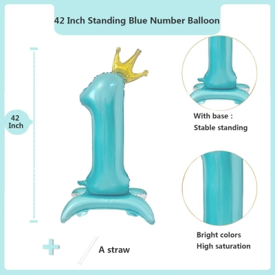 The foil standing number balloons decorations have special inflatable bases. They stand firmly. No extra support is needed. Placement is flexible and free. They come in many colors. Colors include blue, pink and silver. Number styles are complete. They cover digits from 0 to 9. They fit different themes well. Themes include birthday ages and anniversary celebrations.