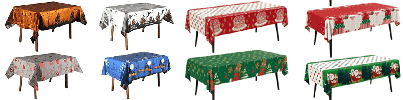 For example, the red and green color matching of Christmas theme, the foil tablecloth with Christmas tree and snowflake pattern, the black and orange color matching of Halloween theme with pumpkin and bat pattern, and the red and gold color matching of Spring Festival theme with lucky characters and lantern pattern can be used for holiday desktop decoration of homes, shopping malls, bars, restaurants and other places.