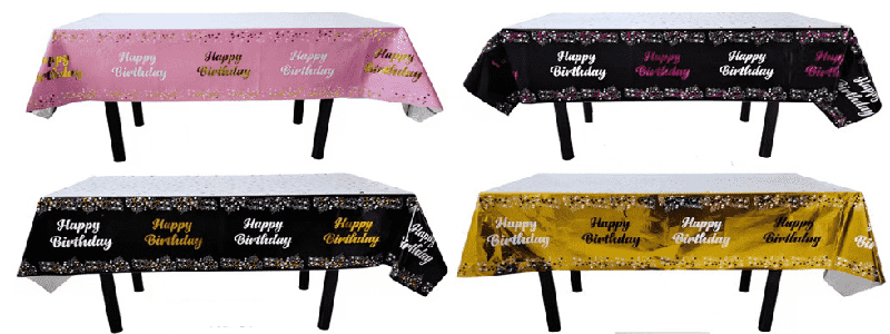 rainbow color, foil tablecloth with cartoon animals and cake patterns, suitable for children's birthday parties; gold, silver, laser color with stars and letter patterns, suitable for adult birthday parties, anniversary celebrations, girlfriends parties, etc., can be arranged in family dining tables, hotel party tables, outdoor picnic tables and other scenes.