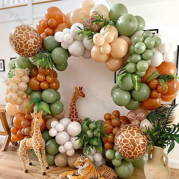 Forest Animal Balloons Garland Arch Kit this striking central decoration is perfect for a children 's birthday party. It is centered around a huge digital balloon and features a variety of jungle hunter-themed character foil Balloons and other earth tones perfectly matched with the animal balloon. Create a warm and wild atmosphere for children (and adults!)" I'm sure I'll like it. Jungle Safari Theme Balloons Garland Kit decoration also adds a perfect atmosphere to your gender reveal party. We wholesale Safari Animal Balloon party decorations and all the balloons are made of high-quality materials. The balloon is made of sturdy aluminium foil or high-quality latex, thick and durable, not easy to break, and can be filled with air/helium. Each balloon has undergone strict testing and can meet your party needs for a whole day.