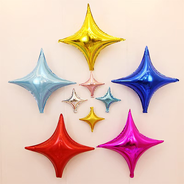 When Four Angle Star Foil Balloons are used with latex balloons, they can perfectly combine the advantages of both. Latex balloons themselves have the advantages of soft texture and rich colors, while foil balloons are more modern and noble. Combining these two types of balloons can not only enhance the overall decorative effect but also give the party more layers.