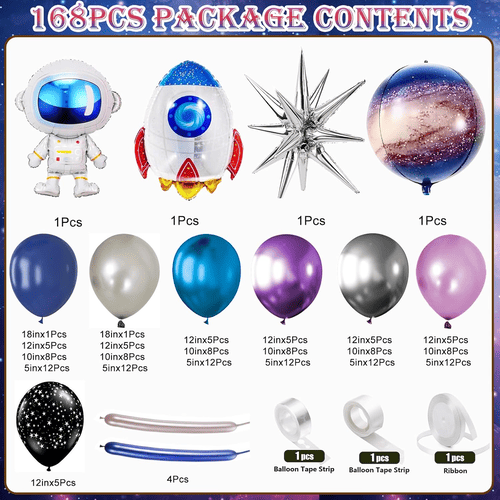 Galaxy theme balloon garland is the a very flexible kit. Apart from the fixed content, we can also add the balloon or change the package bag for you according to your special needs.