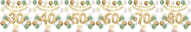 Product description: This green and gold color decoration balloon kit is made of 12inch matte white color balloon, 12inch metallic gold color balloon, 12inch gold confetti balloon, 12inch retro sage green color balloon, gold color paper birthday banner, gold color cake topper and 40inch gold color foil mylar number balloon. Green and gold colors’ combination can make your party full of vitality and a sense of sophistication. It’s the good choice for your parties.