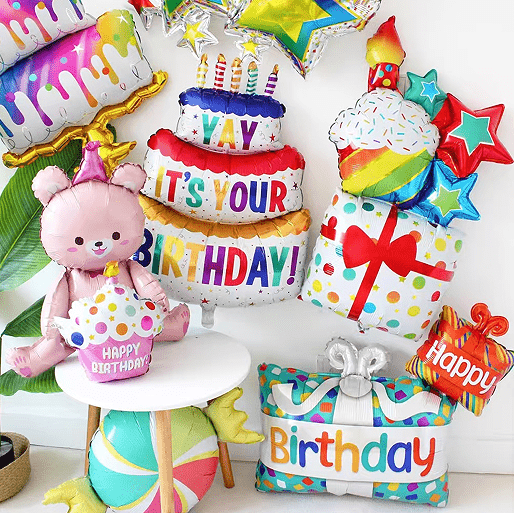 Happy birthday foil balloon has a stronger visual impact and sense of high-level, the product is made of high-gloss aluminum foil material, the surface presents a metallic texture, good reflective effect, shining under the light, can become the focus of the party. The classic models are the full set of Happy Birthday letters balloon and Happy Birthday number balloons like "18", "30" and "60". The modeling models include cakes, love, stars, cartoon characters, animals, etc., which are suitable for different theme needs of children and adults.
