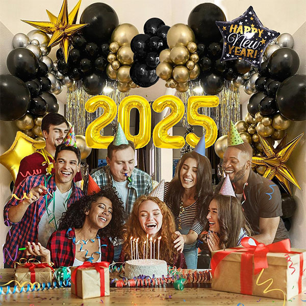 New Year-themed party supplies include a complete set of decorations, tailored for holiday gatherings, helping you quickly create a warm, joyful, and festive atmosphere.