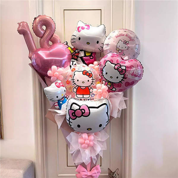 Hello kitty is a cute cat cartoon character, has swept around the world. The hello kitty themed foil balloon made in China is made of high-quality aluminum foil material, which has good sealing performance and is not easy to leak. This foil balloon has more than 30 styles to choose from, including round foil balloons and three-dimensional cartoon characters foil balloons. The combination of two hello kitty themed foil balloons can meet the needs of different occasions. For example, for family gatherings, birthday parties, corporate events, or other celebration occasions, these foil balloons can add a joyous atmosphere to your event.