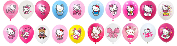 The hello kitty latex balloon we produce supports custom printing patterns. You can send us any patterns you want to print. We have a professional design team that will make the renderings for you to view. In addition, the hello kitty-themed balloon packages we produce all support customized packaging. You can tell us your logo or other contents you want to print, and we will create special packaging for you.