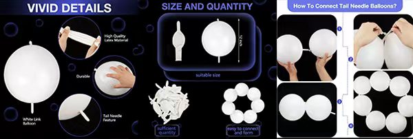 Our Quick Link balloons stand out with their unique end-to-end design, eliminating the need for tools. Compared to traditional balloons, the Advanced Link Balloon connection process is simpler and faster, allowing you to decorate your party or event venue more efficiently.