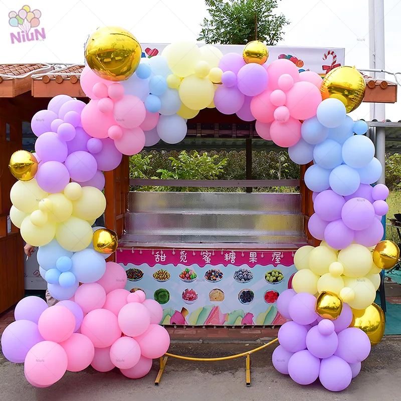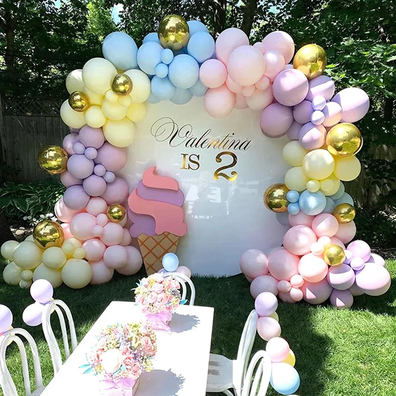 The Macaron Balloon Arch garland is a scene universal party decoration balloon set. As for this balloon arch, our designer has not made specific positioning for it, so the use scenario of this product is diverse. You can use it to decorate your child's birthday party, so that more children can come and bring more happiness to your child. Can also be used to decorate your newly opened commercial stores to attract more customers; Of course, if you have a very happy wedding party, you can also use this balloon to decorate, bright colors, warm colors, will make your wedding very warm, will help you remember your happy moment. So decorating the party with your macaron balloon arch is definitely a good choice for you.