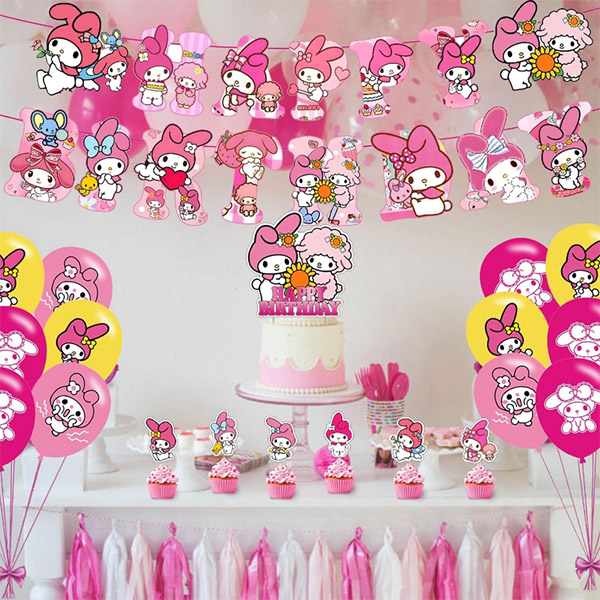 We also introduced the melody theme of the printed balloon, made of natural latex material, environmental protection and pollution-free, to ensure the strength and durability, with helium or air inflation without fear of explosion. This latex balloon printed with a melody pattern can be used with a variety of party supplies, and the number of balloons can be adjusted according to the size of the scene. This Melody themed printed balloon kit usually includes a set of cute happy birthday banners, latex balloons printed with melody patterns, cake top decorations, cupcake top decorations, 18-inch round foil balloons, and three-dimensional Melody foil balloons. Our full range of cartoon party supplies will surprise you, and the whole family and friends will have fun. This set of decorations is designed to be easy to assemble without consuming a lot of time, and you can enjoy it with your lover. It can easily hang birthday banners on the ceiling or wall. Banners are colorful and balloons are easy to inflate. The cake decorations are beautifully made. With these birthday party supplies, you can start a wonderful birthday celebration in no time.