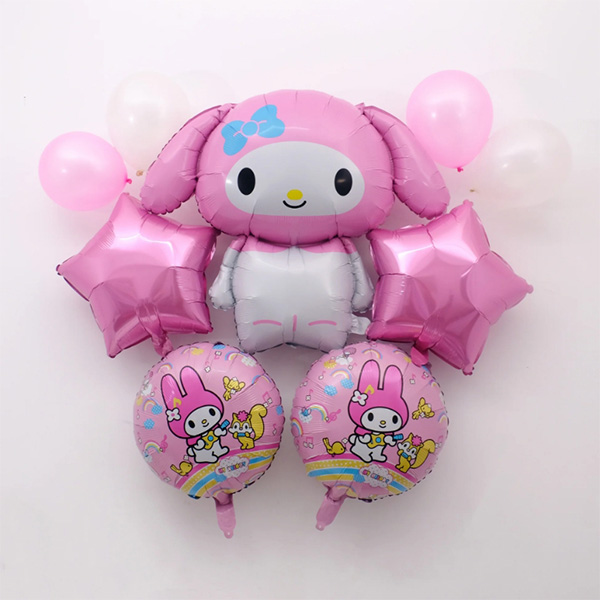 A cute cartoon character featuring a pink turban and a rabbit figure, melody is loved by little girls around the world. This Melody themed foil balloon kit usually includes a three-dimensional Melody foil balloon, a number foil balloon, an 18-inch round foil balloon and an 18-inch star foil balloon. For this Melody's foil balloon kit, we also support customized balloon kit. You can match any other shape of foil balloons, such as love, candy foil balloons or latex balloons, any color of stars, round and number foil balloons. They are well-designed, colorful and capable of adding fun and energy to any celebration. If you purchase Melody foil balloon kit in bulk, we will give you a more favorable price.