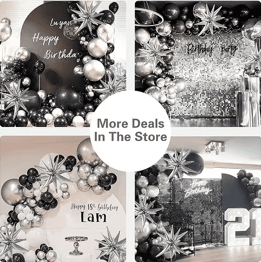 2. Color: We provide a variety of metal colors, a variety of sizes of latex balloons, support monochrome, mix and match or gradient color matching, such as black gold, black silver and blue silver, etc., can also be customized according to the theme of the event.