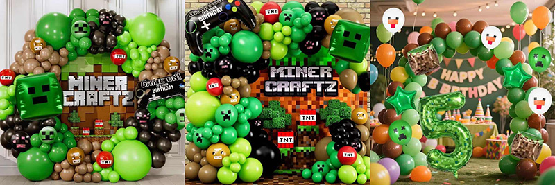 Minecraft foil balloon little sets are made for easy parties or small gatherings. They mix different styles of foil balloons or pair them with a small number of latex balloons to create sets. The “Character + Item” set has Steve balloons, diamond sword balloons, and round theme balloons. The “Number + Scene” set has number balloons and grass block balloons. The balloons in a set match each other. You can quickly make a theme look without any extra effort.
