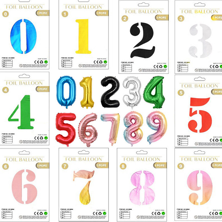Number Foil Balloons: Available in sizes of 16", 32", and 40".