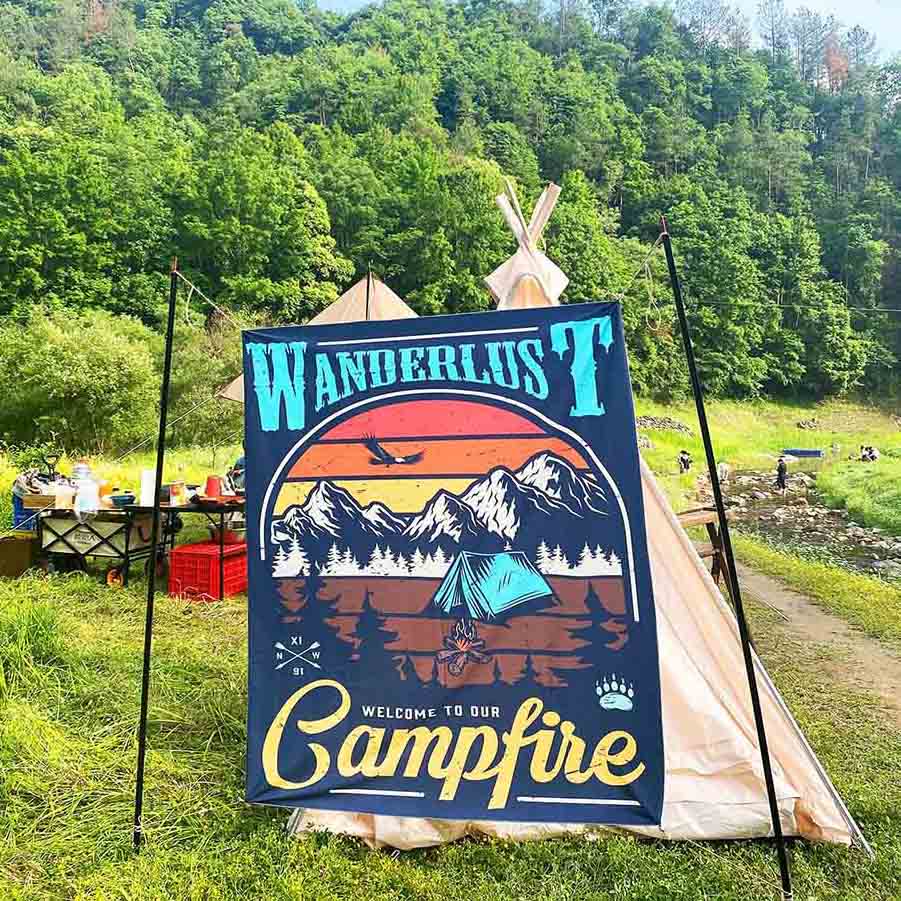 When camping, it can be hung in front of a tent or under a canopy, serving as a backdrop for gatherings and games. The material resists dew and moisture from the grass, and when folded, it's only the size of an A4 sheet of paper, making it lightweight and easy to carry. For weekend cultural and creative markets, community craft workshops, and other activities, the party backdrop can be customized with market themes and event schedules. Made of 100D polyester, it's sun-resistant and won't fade even in direct sunlight.