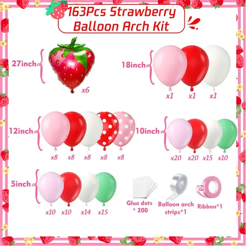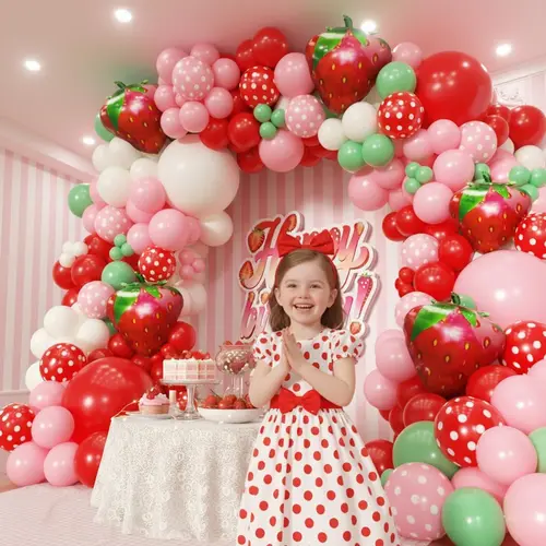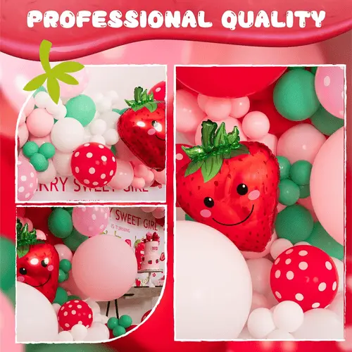 Strawberry themed balloon garland comes with high quality latex balloon and foil balloon. With the cute style of strawberry, it is loved by a lot of customers all around the world. Thus, they have make a good sales performance for all of our customers.