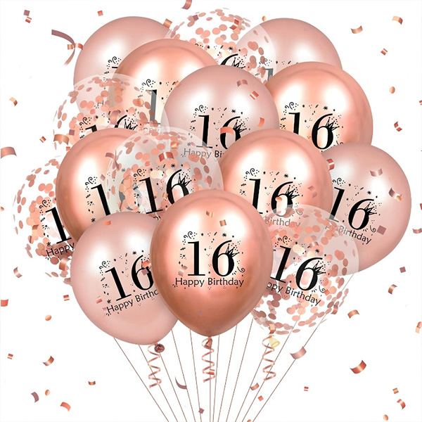 16th birthday printed latex balloon:This 16th birthday printed latex balloon produced by our factory is very suitable for 16th birthday parties and occasions to celebrate the 16th anniversary. We have a variety of colors to choose from. We show rose gold, black gold, purple gold, blue and black. We can also customize 16 printed balloons according to your requirements. They are excellent background props for taking photos and can add joy and active atmosphere to these scenes. This printed balloon can be filled with air, helium or even water, and is not easily damaged or discolored. It is a great decoration for all kinds of 16th birthday parties or family gatherings. Use this latex balloon with other party decorations and decorations for even more fun.