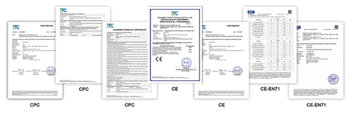 Our full range of products have passed the CPC,CE,EN71 and other authoritative certification, in strict compliance with the European and American and other target market safety regulations. These qualifications can help your goods to clear customs smoothly and completely avoid compliance risks in overseas markets.