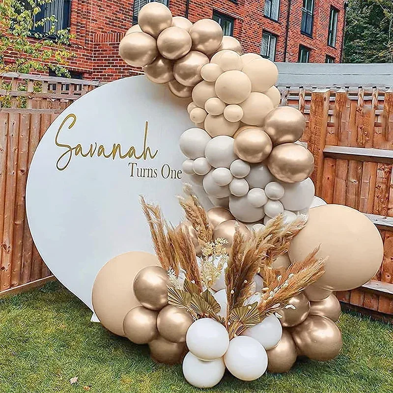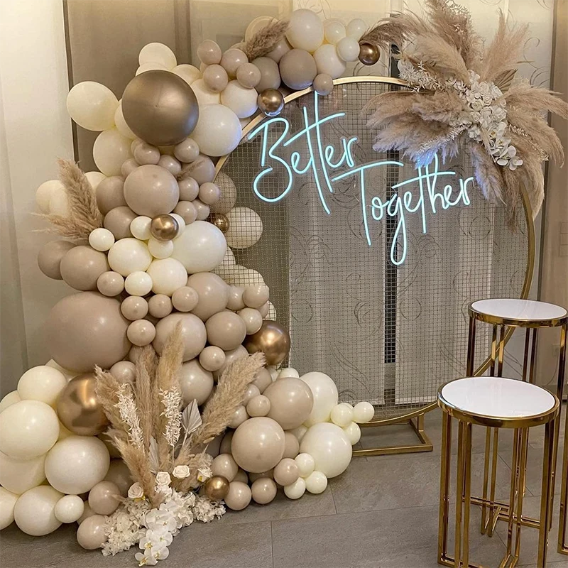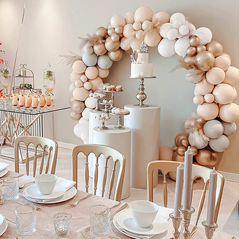 This wedding balloon arch with metallic gold balloons and matte skin balloons is currently one of the more popular balloon sets in Europe and the United States. The designer referred to many European and American weddings and love stories when designing this wedding balloon arch, and finally used gold and skin tone to enhance the grandness of the wedding and make all the guests pay more attention to this wedding, while matching matte white balloons to enhance the holy and romantic sense of the wedding. When your lover hand-held slowly to wards you, in thewedding balloon archunder the knees to propose to you, you will not shed tears of happiness? When your friends and family for your wedding session photos, in the wedding balloon arch set off will be very beautiful.