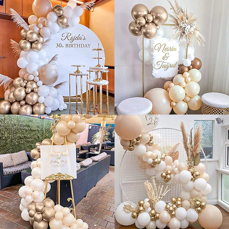According to feedback from previous customers, the wedding balloon arch if it is assembled 2 hours before the wedding is held, because all latex balloons will undergo natural oxidation after the completion of inflation. After your good friends arrive at your wedding site, all hands together to blow up the balloons to decorate the wedding, which is also a blessing to you. You do not have to worry about your friends do not know how to assemble the wedding balloon arch, in the product package, we have carefully made the production process for customers, the operation is very simple, children can also participate in the production. But you must look at the different sizes of balloons, the balloon will be inflated to the standard size, so that the balloons show the best results.