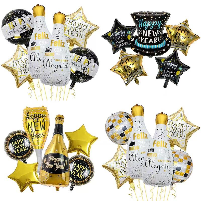 Think about the New Year-themed set. It has foil balloons that look like champagne bottles. It also includes "2026" number balloons, star decorative balloons and more. The main colors are black-gold or gold-white. It’s full of New Year’s festive cheer. It can easily make a luxurious and ceremonial New Year party scene.